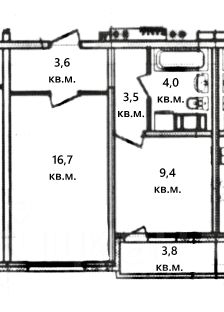 Общая площадь квартиры 36,9 кв.м., жилая площадь 16,7 кв.м., кухня 9,4 кв.м., с/у совмещенный 4 кв.м, балкон застеклён 3,8 кв.м. Квартире имеется выделенная гардеробная зона.