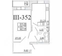 Квартира общей площадью 40,9 кв м , плюс застекленный балкон 2,7 кв м. Просторная кухня 11,2 кв м, правильной формы , где размещен полноценный кухонный гарнитур и диван, может использоваться как дополнительное спальное место. Балкон застеклен, что позволяет создать дополнительное место для хранения. Жилая комната 15,1 кв м , с большой нишей, где можно расположить рабочую зону. Просторный коридор 9,6 кВ м с углубленной нишей под гардеробную, не съедает пространство коридора. И современный раздельный санузел 3,4 и 1,5 кв м.