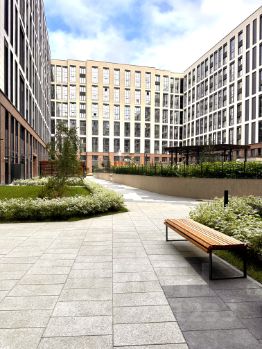 Закрытый двор, внутренняя территория комплекса свободна от машин.