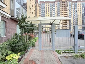 Монолитный дом 2011 года, переменой этажности от 9 до 15, закрытая территория, двор без машин, в доме предусмотрен подземный паркинг, по периметру дома установлена система видеонаблюдения. Вход в парадную без ступенек. На закрытой территории расположены детская и спортивная площадки.