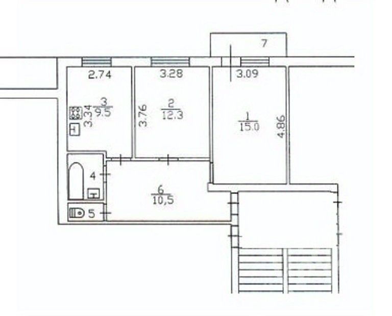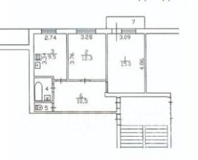 Квартира общей площадью 51,3кв.м. в доме 1989 года постройки.