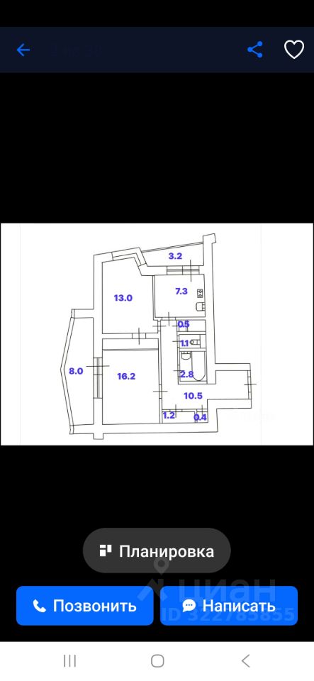 Изолированные комнаты 16,2 и 13,7 кв.м.