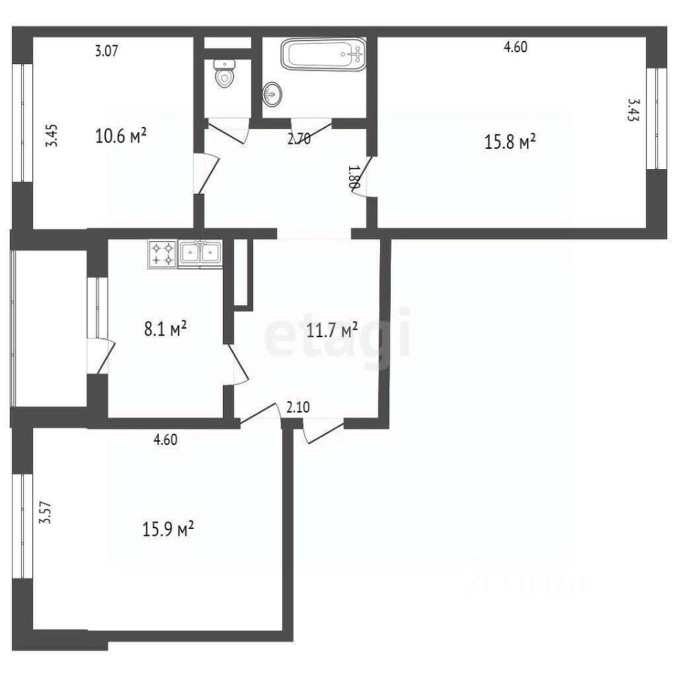* 3 изолированные комнаты, жилая площадь 40 м²
