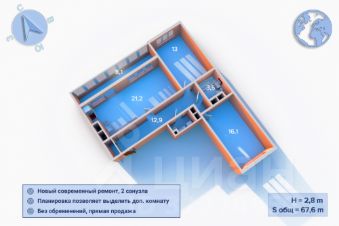 Вы смотрите именно на такую — 2-комнатную квартиру 67,6 м² в ЖК "Полюстрово Парк".