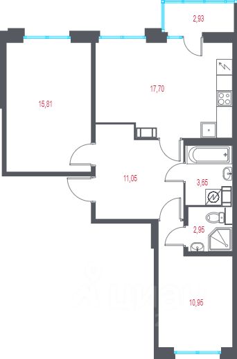 Квартира 58 в корпусе 3 от застройщика в ЖК "Город-спутник Южный"