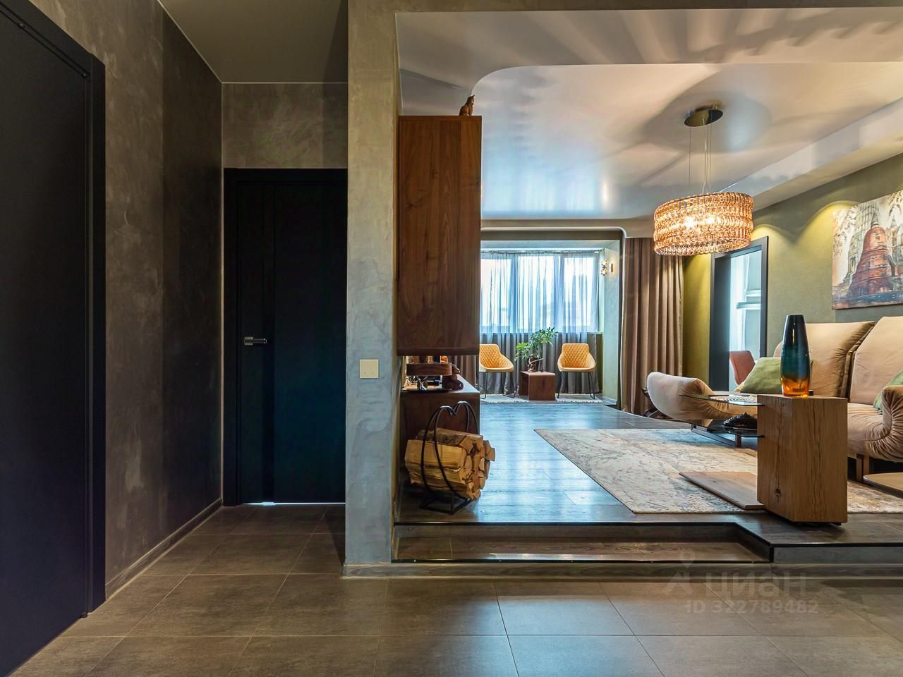 - Дизайнерская изюминка-светящаяся колонна (каменный шпон под Оникс PlayWoods)