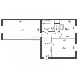 Квартира двухсторонняя: комната 12.2 кв.м с видом во двор, комната 18.8. кв.м с видом на Полюстровский проспект.