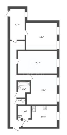 К кухне площадью 11 кв.м. примыкает кладовка 3 кв.м., за счет которой можно расширить кухню.