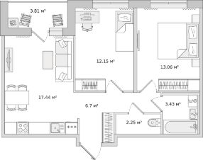 Продаётся двухкомнатная квартира в жилом комплексе ЦДС Dreamline, Корпус 2.8