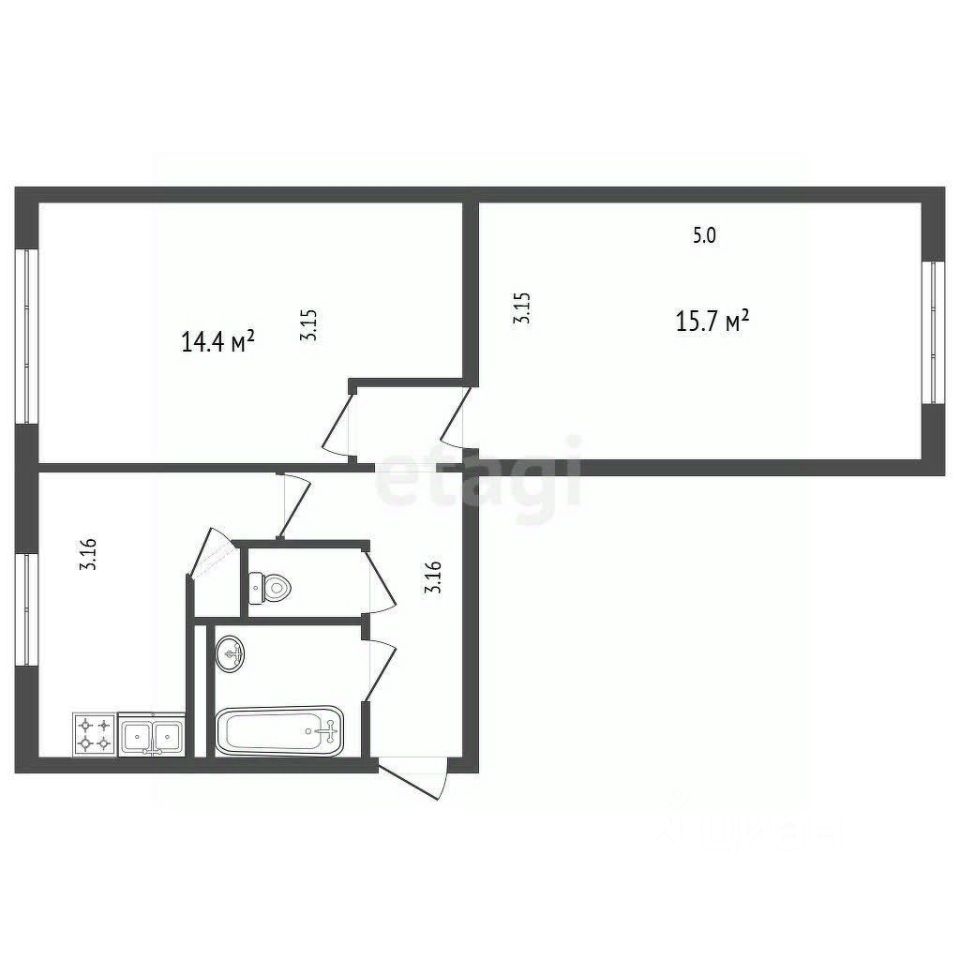 Продаeтся двухcторонняя 2-х комнатная квaртирa площадью 45.8м2 в 15 мин от ст.М Ломоносовская