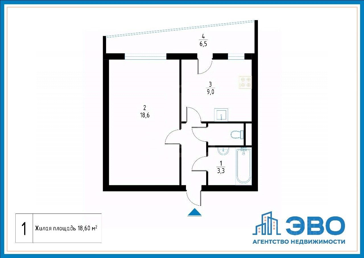 Арт. 119825939 В прямой продаже представлена уютная 1-комнатная квартира на комфортном 4 этаже.