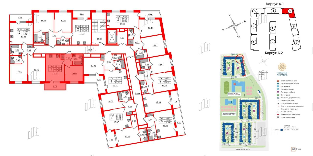 Продаётся 2e-кoмнaтная (евродвушка) квaртира с чистовой отделкой в Moскoвcком рaйoнe в ЖK "Парадный ансамбль" застройщик Setl Group.