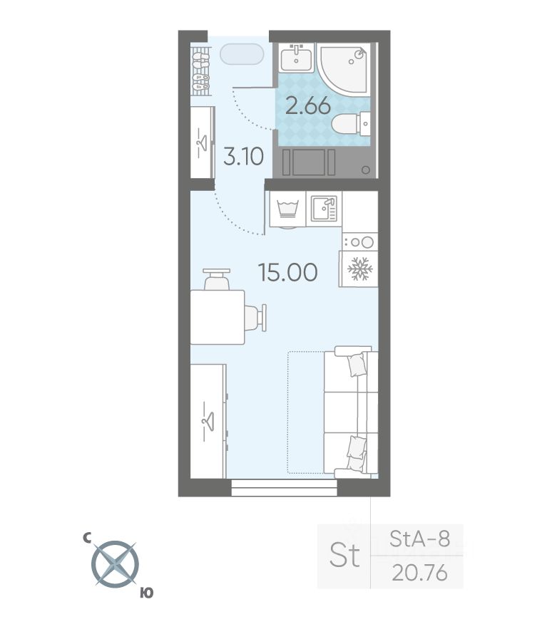 Продаётся студия в ЖК "Ручьи" на 13 этаже. Общая площадь составляет 20.80 кв. м. Квартира с чистовой отделкой. Жилой комплекс "Ручьи" располагается по адресу Санкт-Петербург, Красногвардейский.