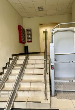 Дом оборудован двумя пассажирскими и двумя грузовыми лифтами, а также пандусом, что удобно для семей с маленькими детьми или для людей с ограниченными возможностями. Территория дома благоустроена, вокруг много детских площадок и очень много зелени.