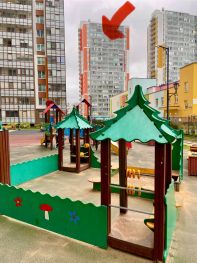 Район 7 столиц - неплотная застройка, - вокруг дома очень просторно, окна выходят на футбольное поле и школу.