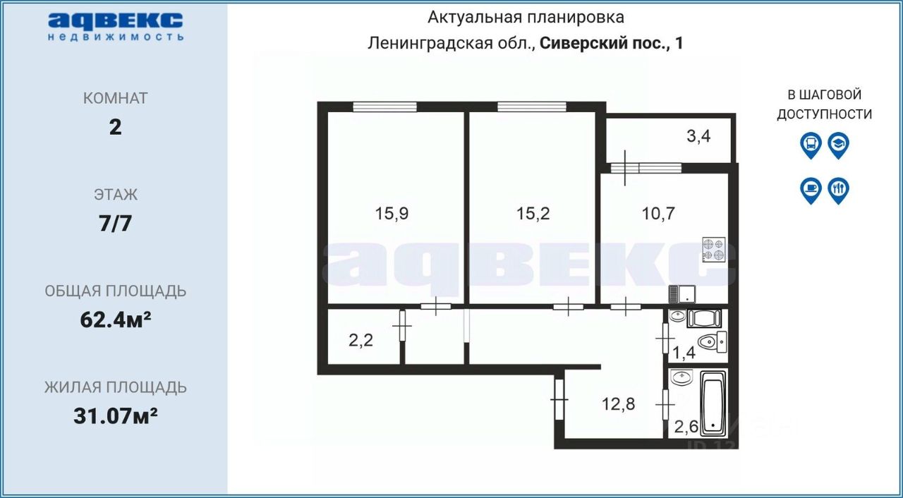 Отличная локация: 15 мин пешком до ж/д станции "Сиверская"- 50 мин на "Ласточке" и Вы в центре С-Петербурга, на Площади Восстания. Напротив дома остановка автобусов. 3 мин пешком до реки Оредеж - отличное место для прогулок, рыбалки, купания. Во дворе Ozon, 7 мин пешком до Магнита и Пятерочки, 7 мин пешком до школы 3 и детского сада.