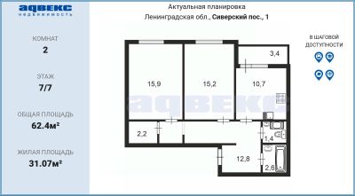 В ПРЯМОЙ продаже отличная 2-комнатная квартира по адресу: Гатчинский р-н, городской поселок Сиверский, ул. Космонавта Титова, дом 1. Новый монолитный дом, сдан и введен в эксплуатацию в 2024 г. В квартире просторная кухня 10,7 кв.м с выходом на застекленную лоджию и две изолированные комнаты 15,2 и 15,9 кв.м. Для Вашего комфорта в квартире есть гардеробная 2,2 кв.м. Раздельный санузел. Шикарный вид!