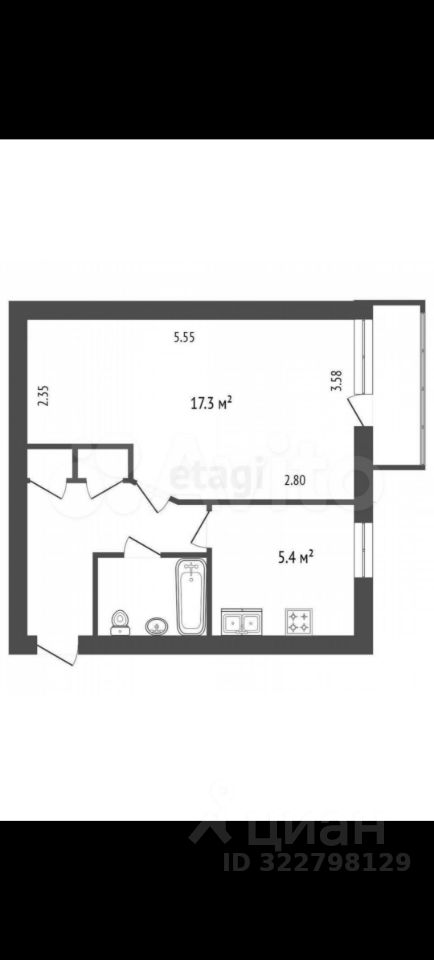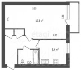 В квартире есть все необходимое для комфортной жизни. Кухня площадью 5,4 кв. м. Санузел совмещенный. Также имеется балкон.