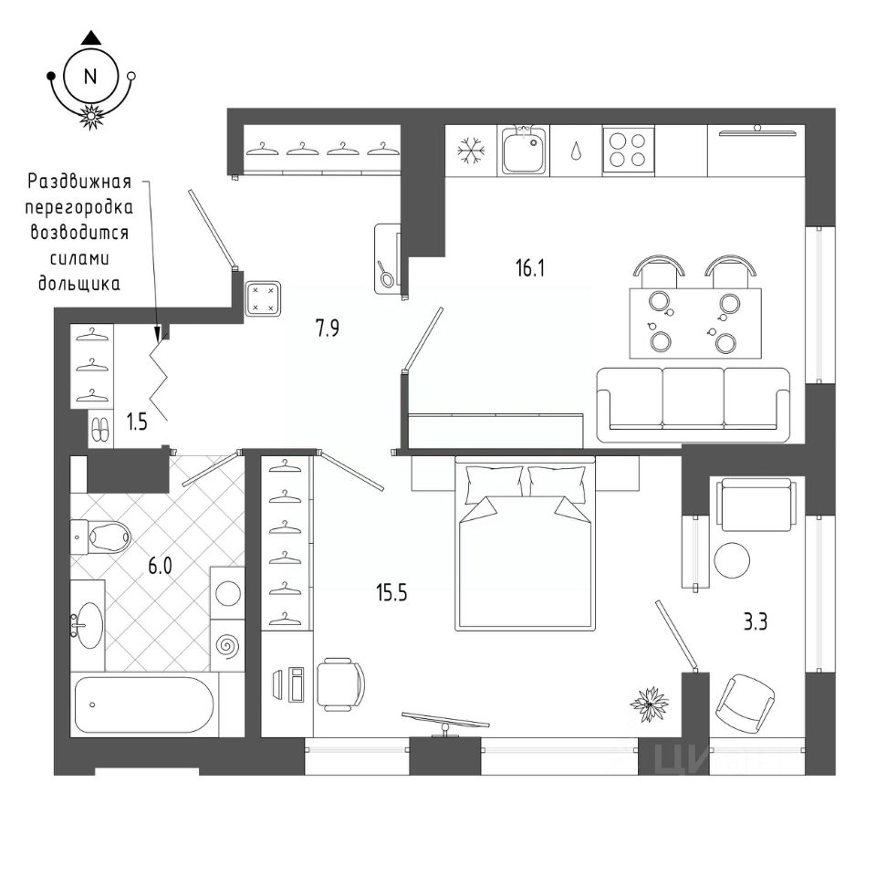 Продается квартира 1392, по адресу г. Санкт-Петербург, Адмиралтейский район, Измайловский бульвар, д. 11, стр. 1, корпус Квартал "Галактика", корпус 9.3 в Квартал "Галактика" на 6 этаже, с площадью 48.7 м2.