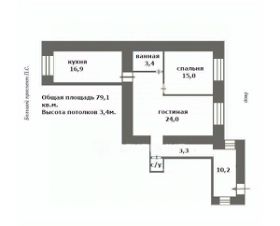 Высота потолков 3,4 метра. Большие окна, высотой 2 метра. Удобная двухсторонняя планировка.