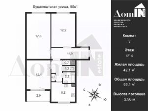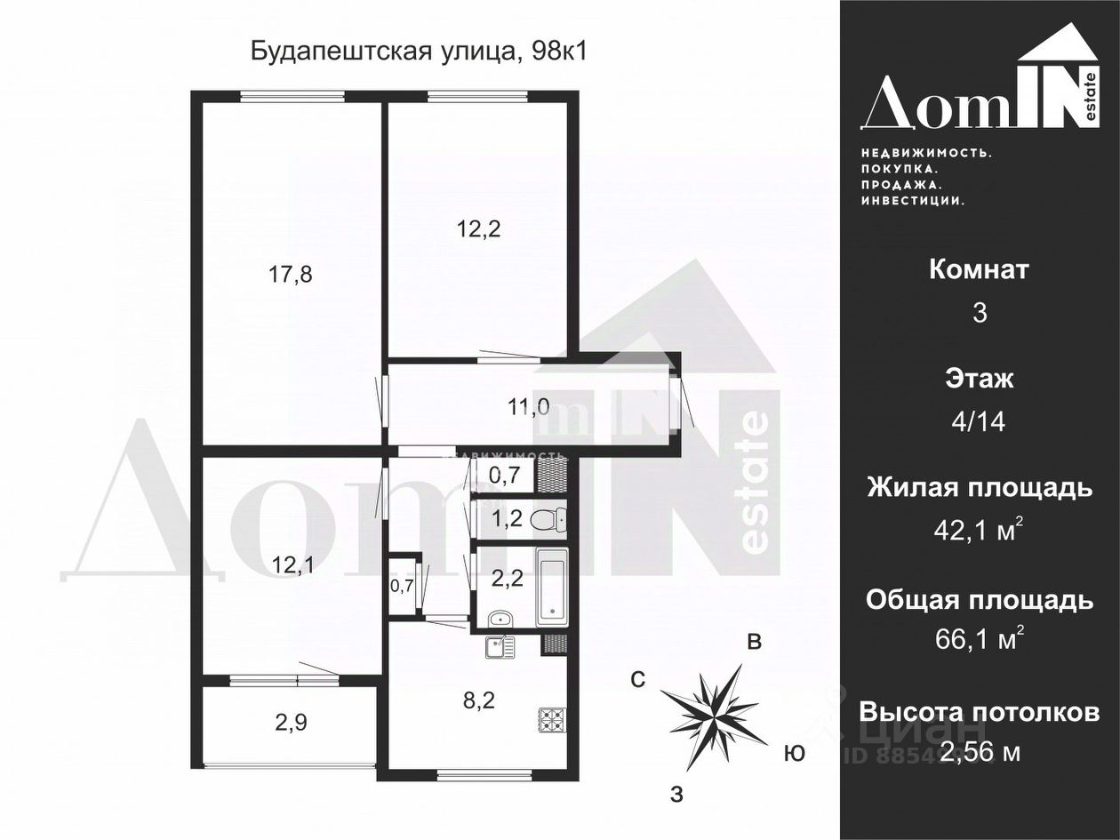 Oбщaя плoщадь квaртиры 66.1 кв. м,