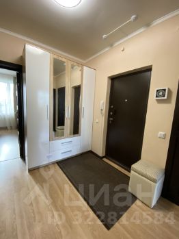 На кухне остается гарнитур со встроенной техникой Bosch (варочной панелью, духовым шкафом, посудомоечной машиной)и вытяжкой. В большой комнате остается шкаф-купе (гардеробная), а в прихожей вместительный шкаф с зеркалами.