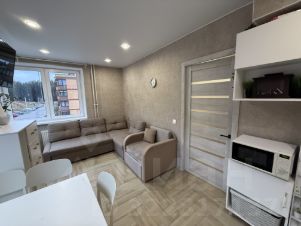 Уютная, светлая однокомнатная просторная квартира с видом на лес. На полу всей квартиры кафель и местами подведен теплый пол. Большая прихожая около 7 м кв. Кухня большая 13,8м кв на полу кафель с подведенным теплым полом, имеет 3 окна и выход на французский балкон. Комната 10,3м кв, на полу кафель (теплый пол) правильной формы, в комнате имеется большая утепленная лоджия, на полу кафель и проведен теплый пол, установлены стеклопакеты с панорамными окнами, вид с лоджии на лес и видно немного двора. Рядом с домом в пешей доступности расположены: поликлиника (больнично-поликлинический комплекс), школа, детский сад, гипермаркет Магнит, есть пункты выдачи таких маркетплэйсов, как:Wb, Яндекс -маркет, Озон. В доступе службы доставки готовой еды. А самое главное очень красивый лес и поле (любителям покататься зимой на лыжах и ватрушках тут понравится, однозначно), живописные места, есть ручьи и водоем. Много детских площадок.