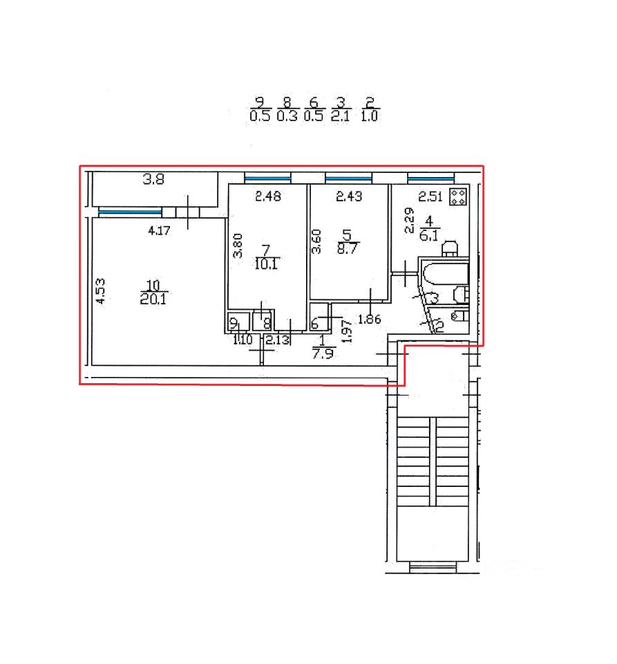 Комнаты раздельные, правильной формы 20,1 + 10,1 + 8,7 кв.м.