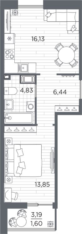 Продаётся 1-комнатная квартира в строящемся доме (Дом 3), срок сдачи: IV-кв. 2027, общей площадью 42.85 кв.м., на 7 этаже. Жилой квартал Respect - современная респектабельность.