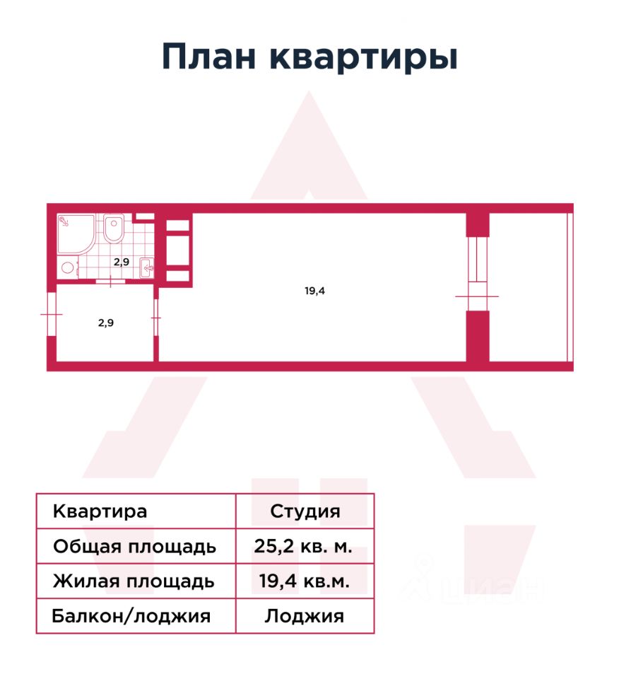 — Светлая студия с эргономичной планировкой, 25.2 м+ балкон