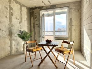 - КУХНЯ-ГОСТИНАЯ (17.2 м²), которая является сердцем квартиры. Здесь легко разместится обеденный стол и диван как отдельная зона для отдыха.