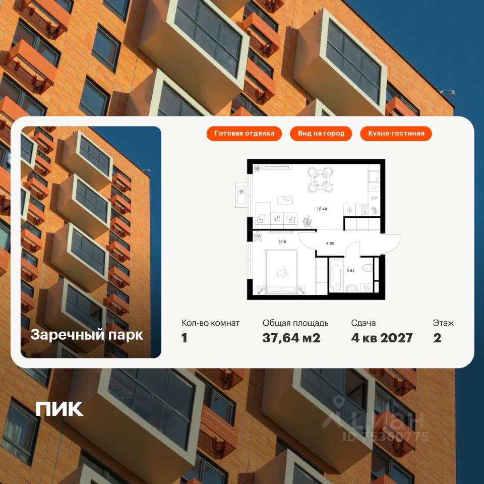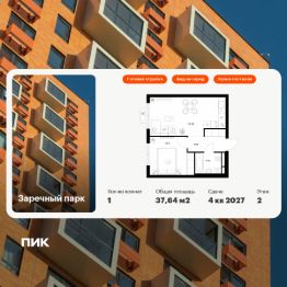 Продаётся 1-комн. квартира площадью 37,64 кв.м на 2 этаже 24 этажного дома (Корпус 5, Секция 2) проекта ПИК Заречный парк. Светлый просторный подъезд на уровне земли, функциональная планировка, большие окна, c отделкой.