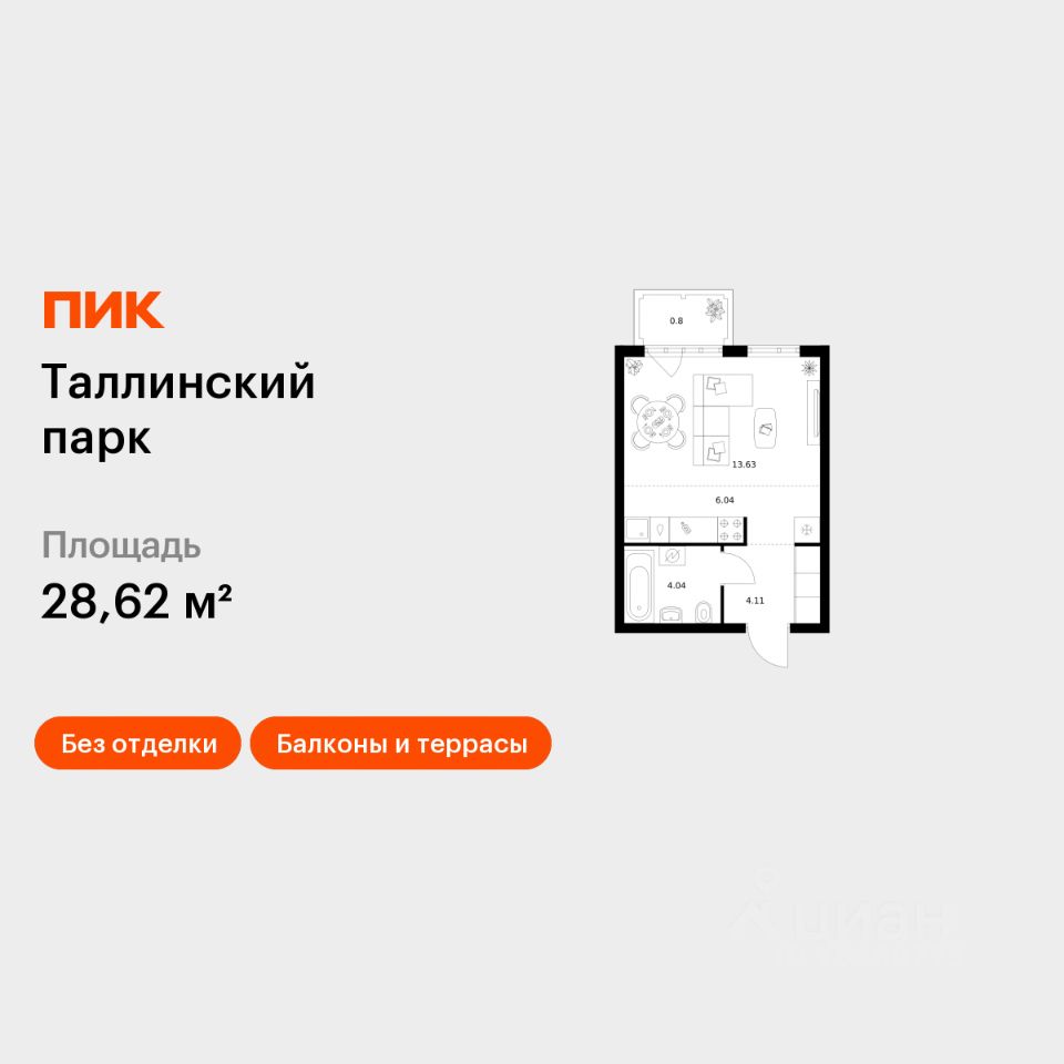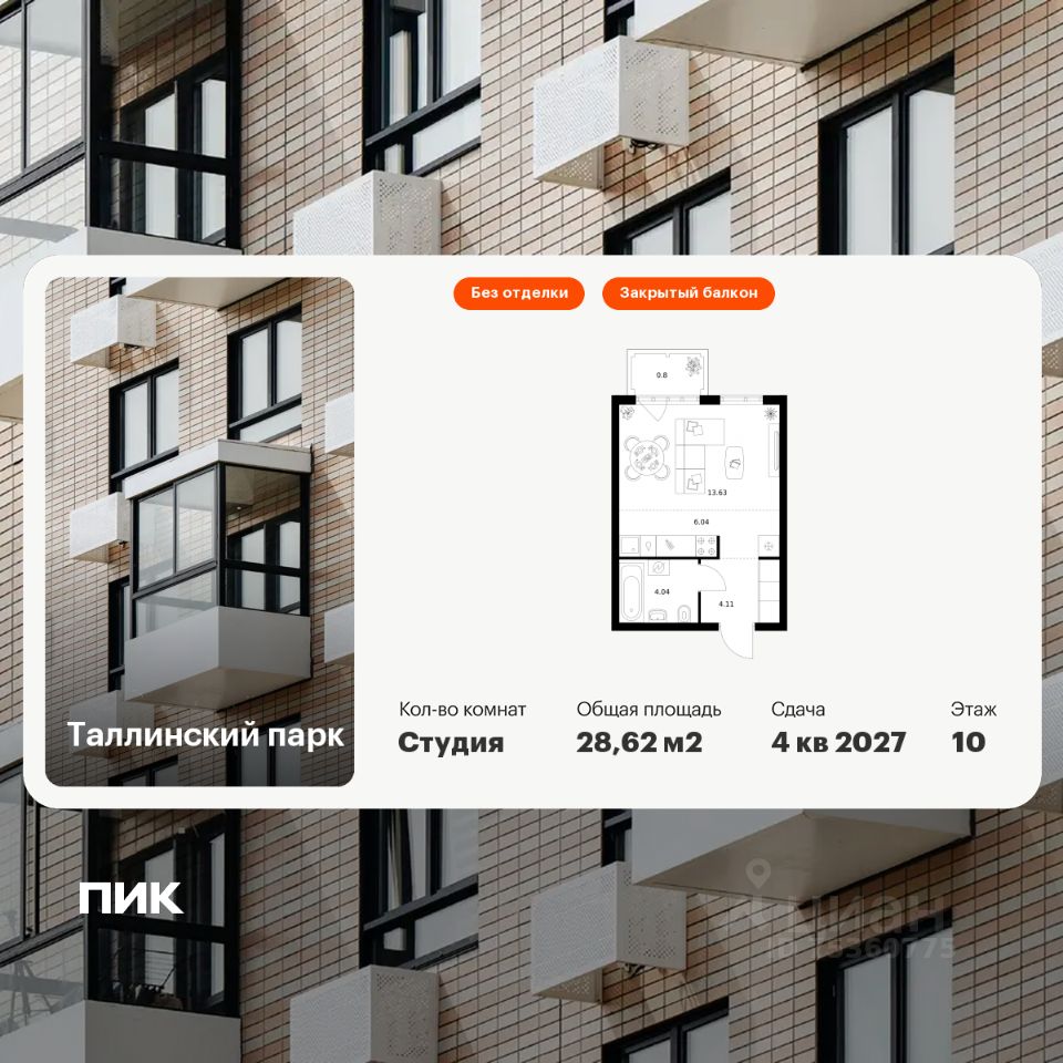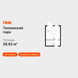 Продаётся квартира-студия площадью 28,62 кв.м на 10 этаже 12 этажного дома (Корпус 4.2, Секция 1) проекта ПИК Таллинский парк. Светлый просторный подъезд на уровне земли, функциональная планировка, большие окна, без отделки.