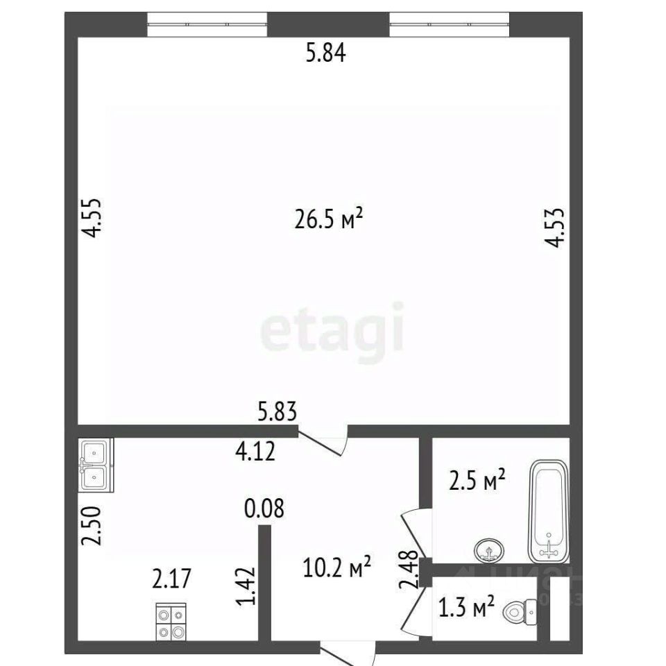 Продается светлая студия с двумя окнами в жилом районе с развитой инфраструктурой.