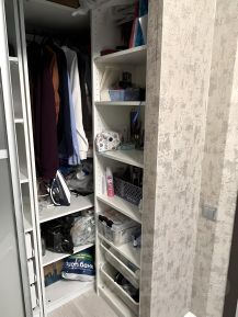 Оставляем: кухонный гарнитур со встроенной техникой (2 года), холодильник, кухонный стулья, шкафы в гардеробной.