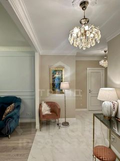 Дизайнерский ремонт с элементами лепнины и премиальной сантехникой.