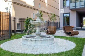 Приятная внутренняя инфраструктура: фонтан, прудик, шахматная доска, газоны, современные спортивные и детские площадки.