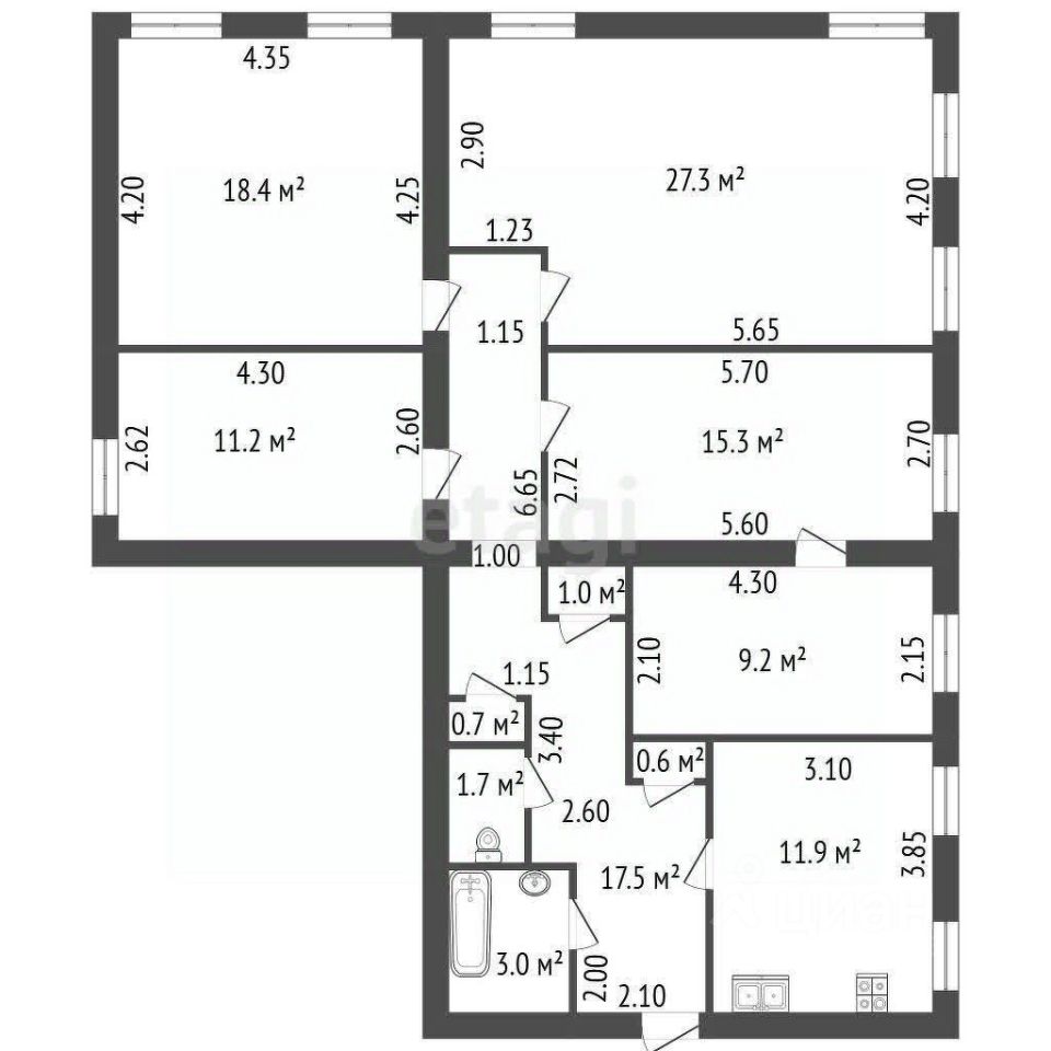 Квартира 117,8 метров, высота потолков 2,7 метра.
