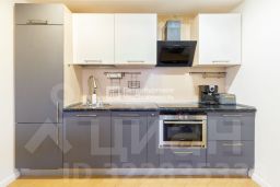 Кухня оснащена новым гарнитуром со встроенной техникой: комбинированной варочной панелью Electrolux (сочетание индукционного и электрического типов), вытяжкой, встроенным духовым шкафом с функцией СВЧ-печи и вместительным холодильником Siemens.