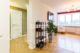 Санузел в квартире раздельный. В ванной комнате установлена широкая раковина с двумя смесителями, большое зеркало с подсветкой и вместительная система хранения. Смесители и унитаз - марки Jacob Delafon (Франция), душевой комплект - Hansgrohe (Германия). Также в квартире есть сплит-система кондиционирования, обеспечена хорошая вентиляция и шумоизоляция.