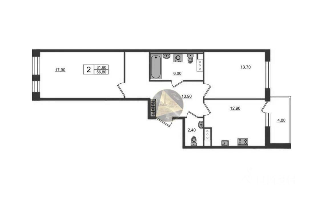 В продаже 2-комнатная квартира в 12 минутах от метро Удельная: