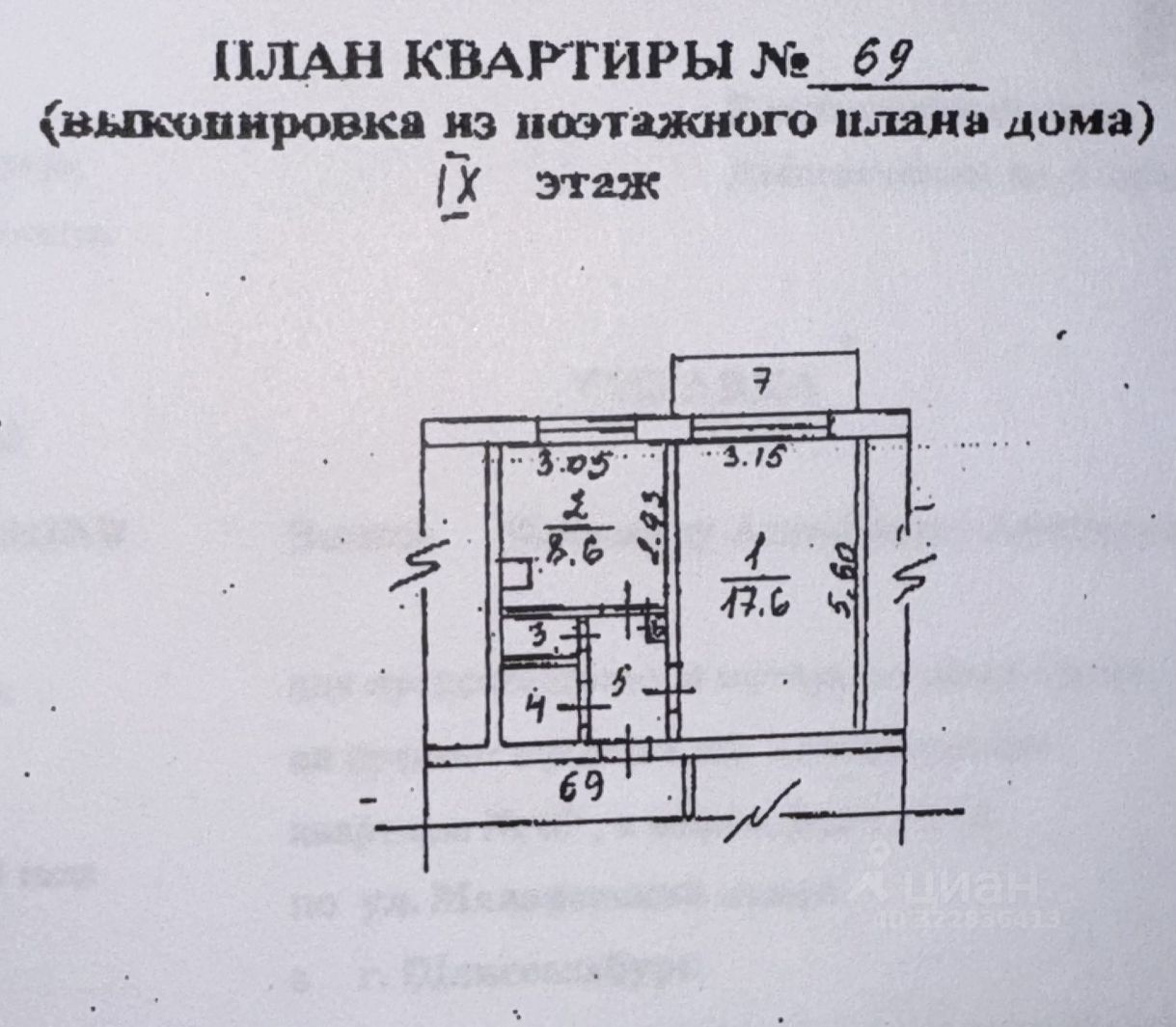 Продается уютная однокомнатная квартира в панельном доме, построенном в 1984 году. Общая площадь составляет 33.2 кв.м, из которых 17.6 кв.м жилая площадь, 8.6 кв.м - кухня, раздельный санузел. Квартира расположена на 9 этаже 9-этажного дома, с окон открывается вид на улицу. Высота потолков 2.5 метра.