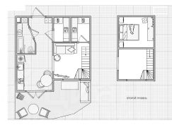Метраж по полу 35 м², за счёт второго этажа - 44 м²