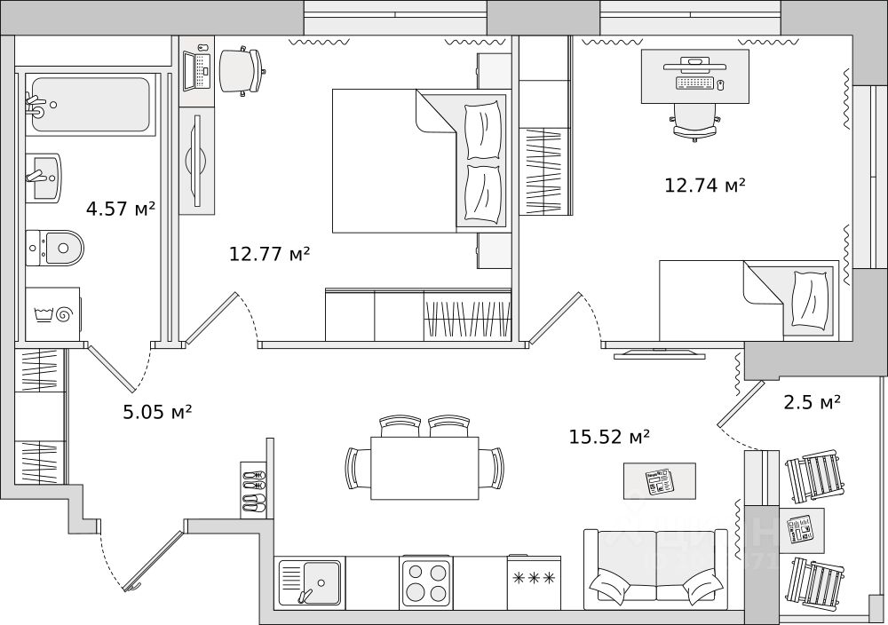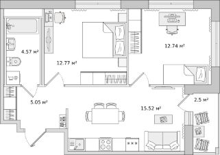 Продаётся двухкомнатная квартира в жилом комплексе Parkolovo, Корпус 2.2