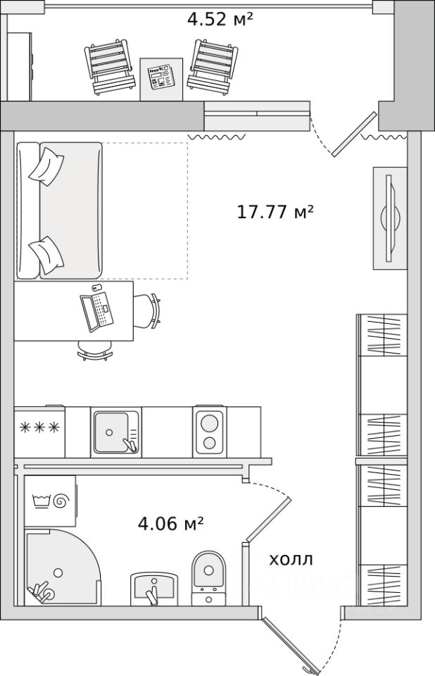 Продаётся квартира-студия в жилом комплексе Parkolovo, Корпус 2.2