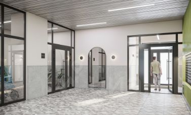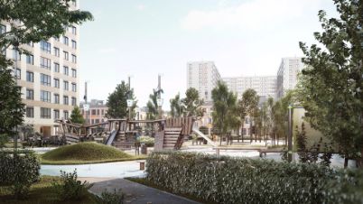 Здесь вы найдете полноценное место для отдыха и мероприятий с ярусными скамейками и большой елью, несколько детских площадок и спортивный кластер с баскетбольной и волейбольной площадками, воркауттренажерами и лужайкой для йоги. Паркбульвар станет настоящим хабом для пешеходов — дорожки к популярным точкам инфраструктуры будут переплетаться с основной транзитной дорогой с асфальтовым и набивным покрытием, по которой будет удобно идти, бежать или ехать на самокате.