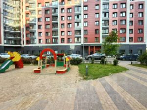 Рядом прогулочная аллея с фонтанами, спортивный парк Лаврики, детские площадки, кафе, магазины, ТРК Небо — 10 минут пешком, школа, детский сад.