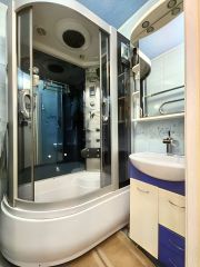 Кухонный гарнитур выполненный на заказ со встроенной техникой Bosch — духовой шкаф, варочная панель, посудомоечная машина, вытяжка. Установлен кондиционер. Очень много мест для хранения — во всех комнатах установлены шкафы, также есть встроенный шкаф и кладовка в коридоре. Почти вся мебель и техника остаётся новым владельцам!
