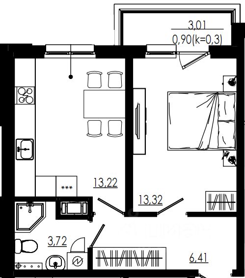 Общая площадь37,58 м²