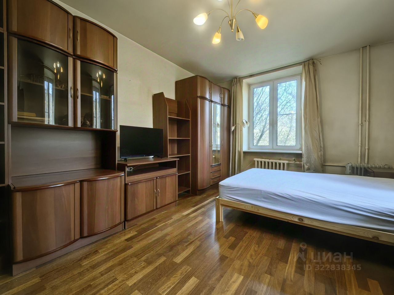 Сталинский дом, толстые кирпичные стены, железобетонные перекрытия. Потолки 3 метра. Всего 2 квартиры на этаже. Высокий 2 этаж, выглядит как третий. В просторном дворе детская и спортивная площадка. Окна выходят в тихий двор. Вокруг много больших деревьев, поют птицы, очень зелено.